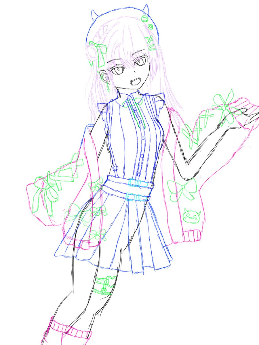 #百鬼絵巻 ラフ 衣装がむずすぎた。。。あらためてプロの方のキャラデザのすごさを実感した