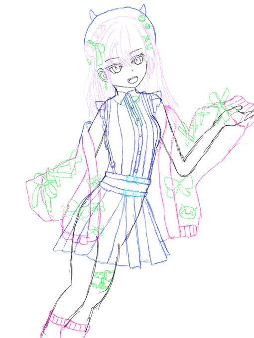 0 5 #百鬼絵巻 ラフ 衣装がむずすぎた。。。あらためてプロの方のキャラデザのすごさを実感した 22/02/23 16:04