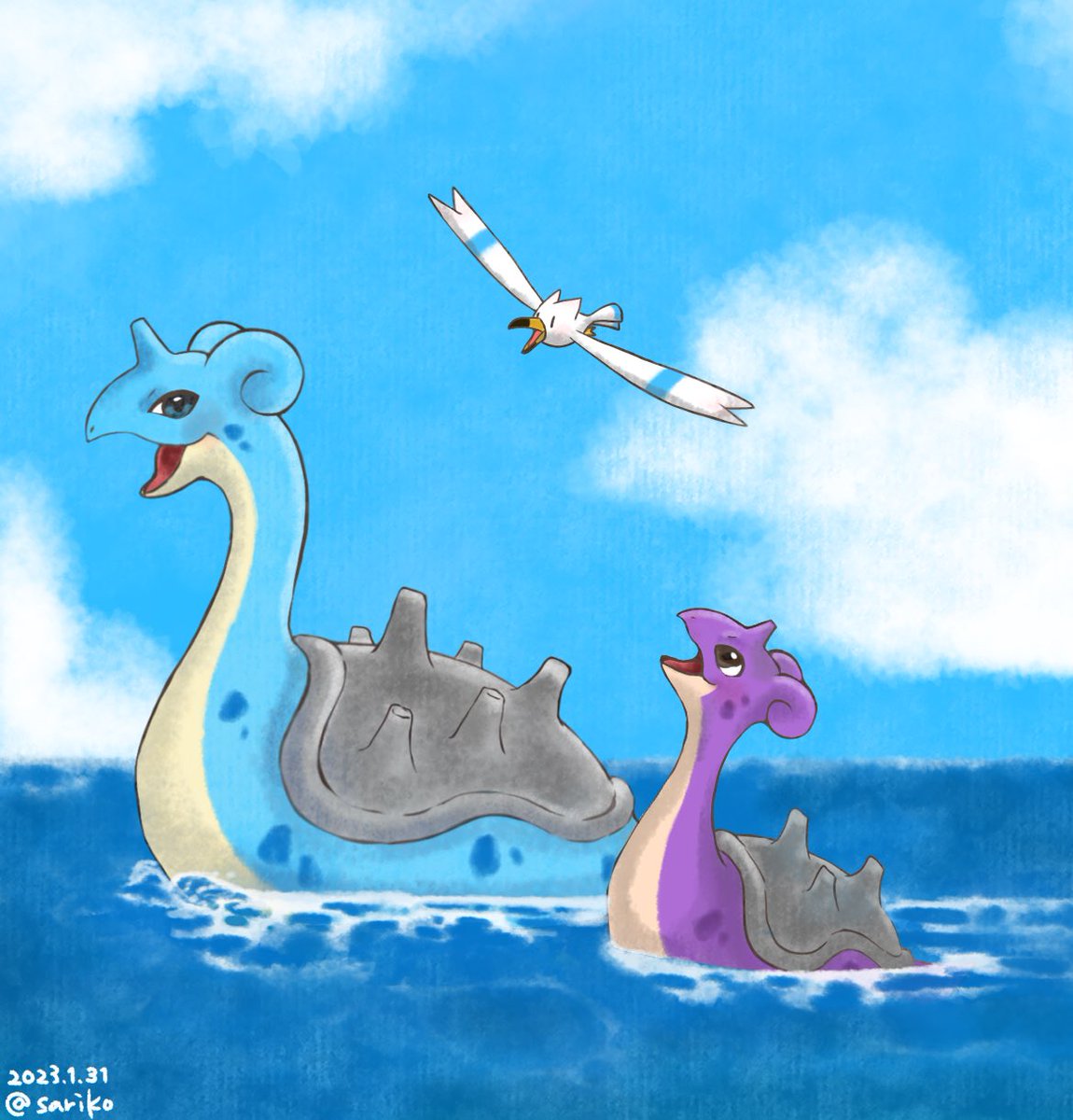 0 15 #ラプラスの日 ラプラス親子とキャモメ #ポケモンイラスト 23/01/31 17:11