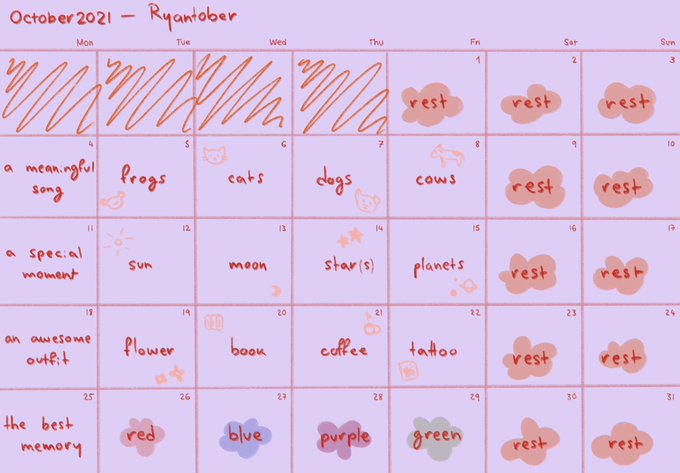 thread of my #inktober2021 🤲🏻😼 here’s the list i made, i’ll be drawing mainly ryan akagi from infinity train !