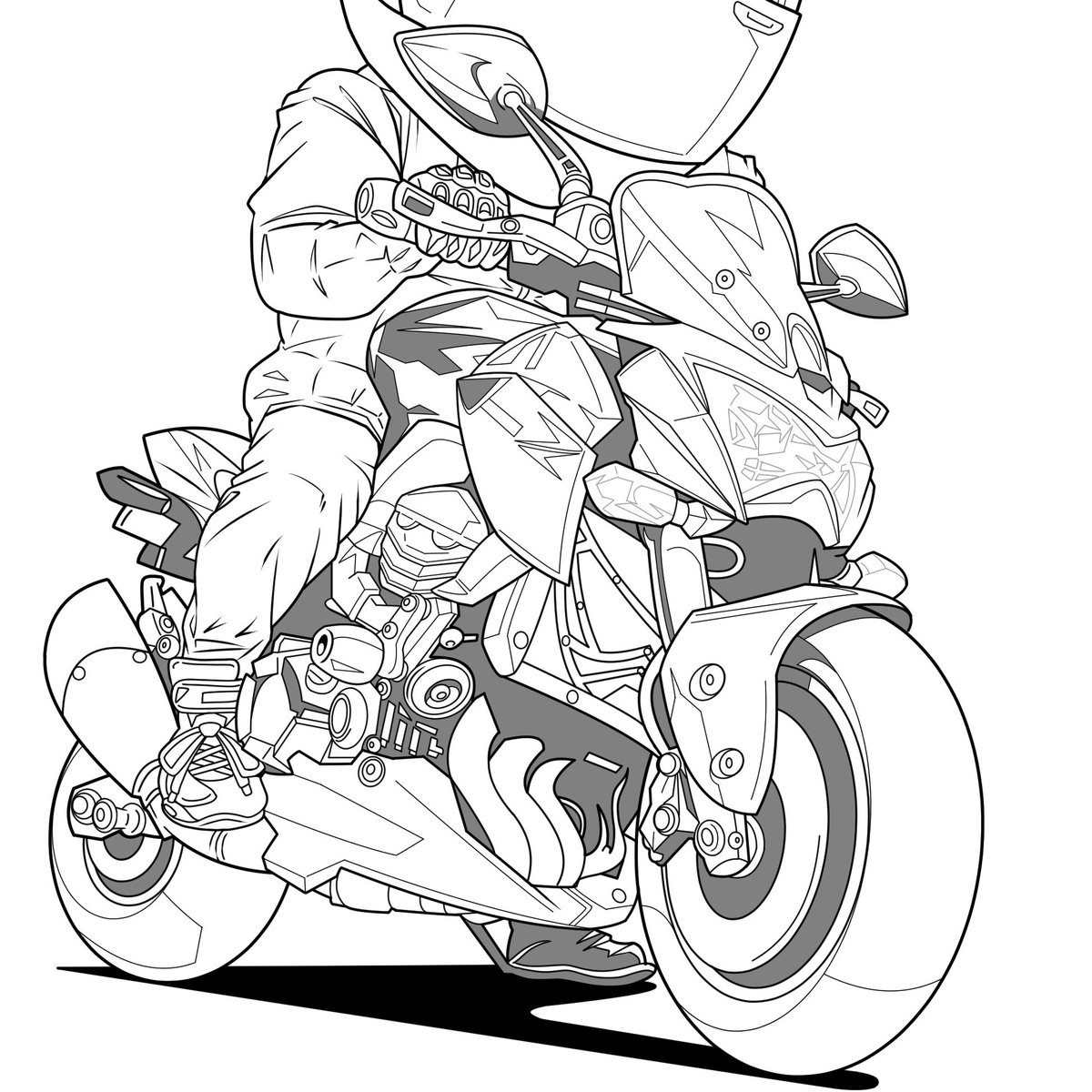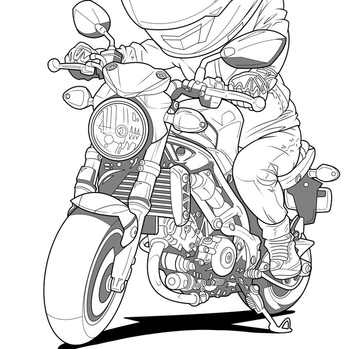 おはようございます 先日のご依頼絵(修正前ver) 次はバイク描いてます✏️