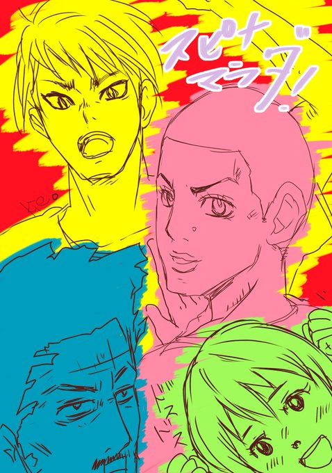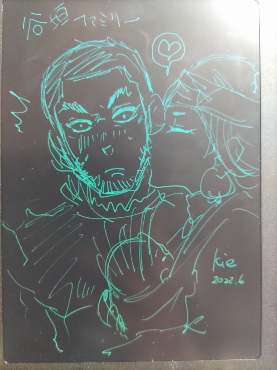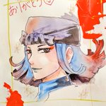 #金カムアナログイラスト部 スケブ企画用だったけど顔にスタンプしちゃったから没😂(塗りにやけくそ感でてます(笑))スケブはほんとざっくり塗ります。イベントでは一枚20〜30分な感じで描いてましたねぇ なんか赤が物騒でしたね🙄