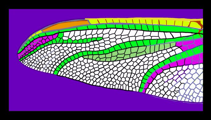 #Inktober2020 #CCInktober2020 Prompt: Patterns in Nature Here's a dragonfly wing, drawn and coloured just for fun. Read about how dragonflies get their wing patterns here: sciencedaily.com/releases/2018/… #wild #Wings