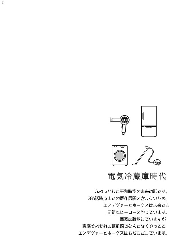 5/4新刊サンプルUPしました。 「電気冷蔵庫時代」文庫64p/400円 ヒ暇世な平和時空の未来で家電をクラッシュしたり買い換えたりしつつ、なんかもだもだしてる炎ホです。 【MHA】電気冷蔵庫時代【サンプル】 | 丹羽ましら #pixiv pixiv.net/novel/show.php…