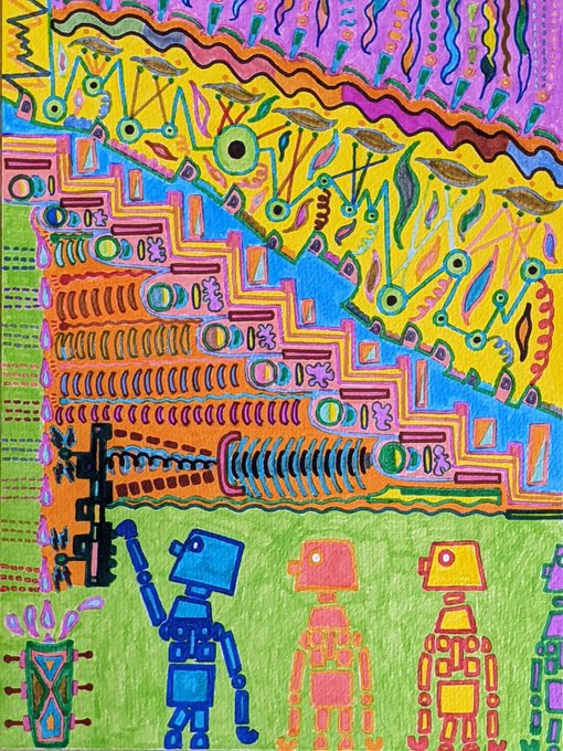 【機械だって夢を視る】 #絵 #イラスト #アナログ画 #ボールペン #水性ペン