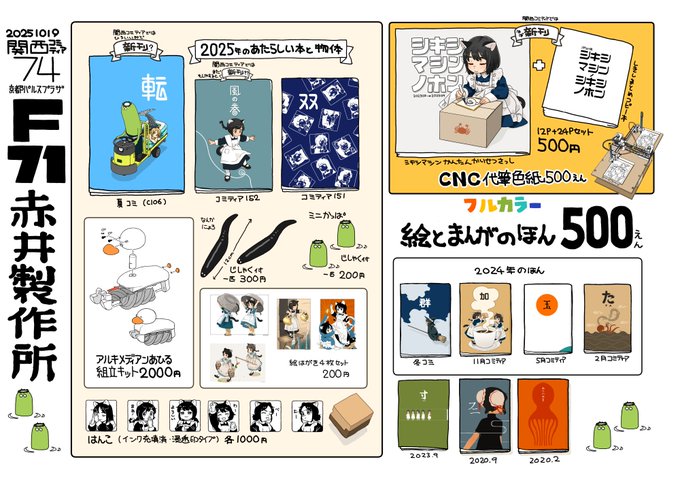 26 88 10/19 関西コミティア74(京都パルスプラザ) 赤井製作所はF-71です 9月コミティアとだいたい同じですが関西コミティア換算では3冊の新しいのがあります 25/10/18 19:30