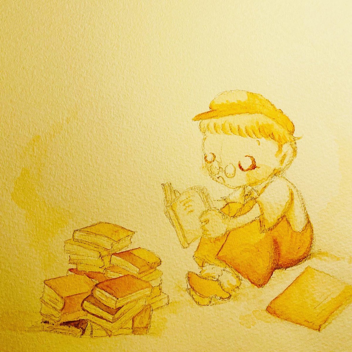 「本に夢中」 読書の夏休みですよ。 古書店に行きたい。 #イラスト #セピア #鉛筆 #水彩 #少年 #本 #本屋 #古書店 #読書感想文 #夏休み #illustration #sepia #pencil #Watercolor #boy #book #reading #bookstore #secondhandbookstore #secondhandbooks #summervacation
