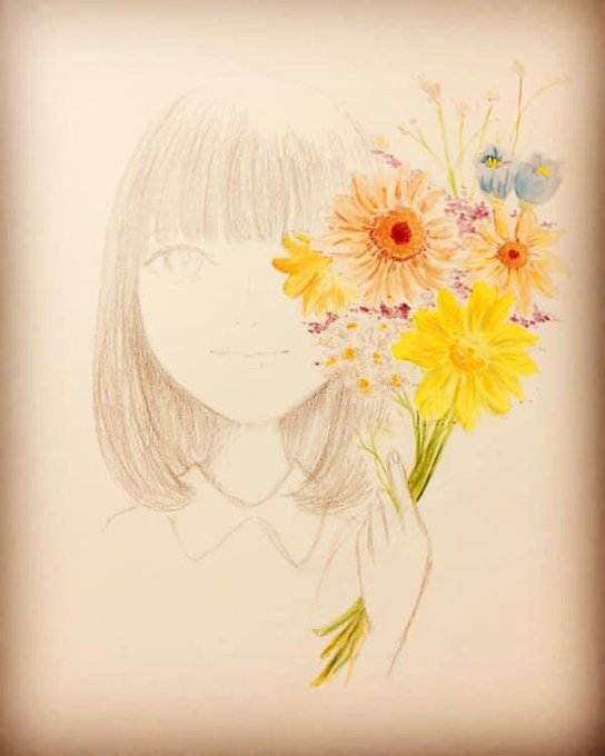 花言葉は「希望」です。 #ガーベラ #花言葉 #鉛筆画 #水彩 #イラスト #illustration #pencildrawing #flowers #flowerlanguage #hope #gerbera