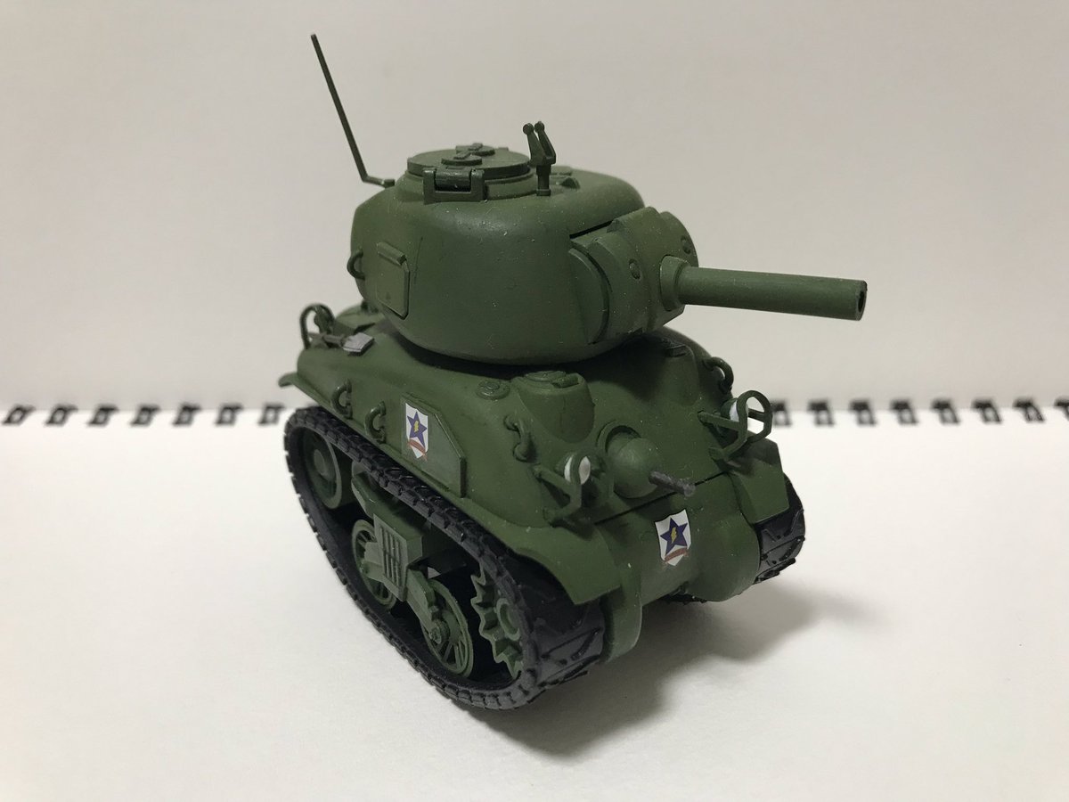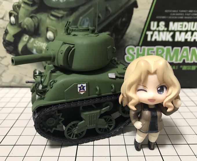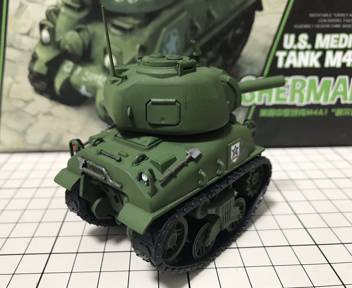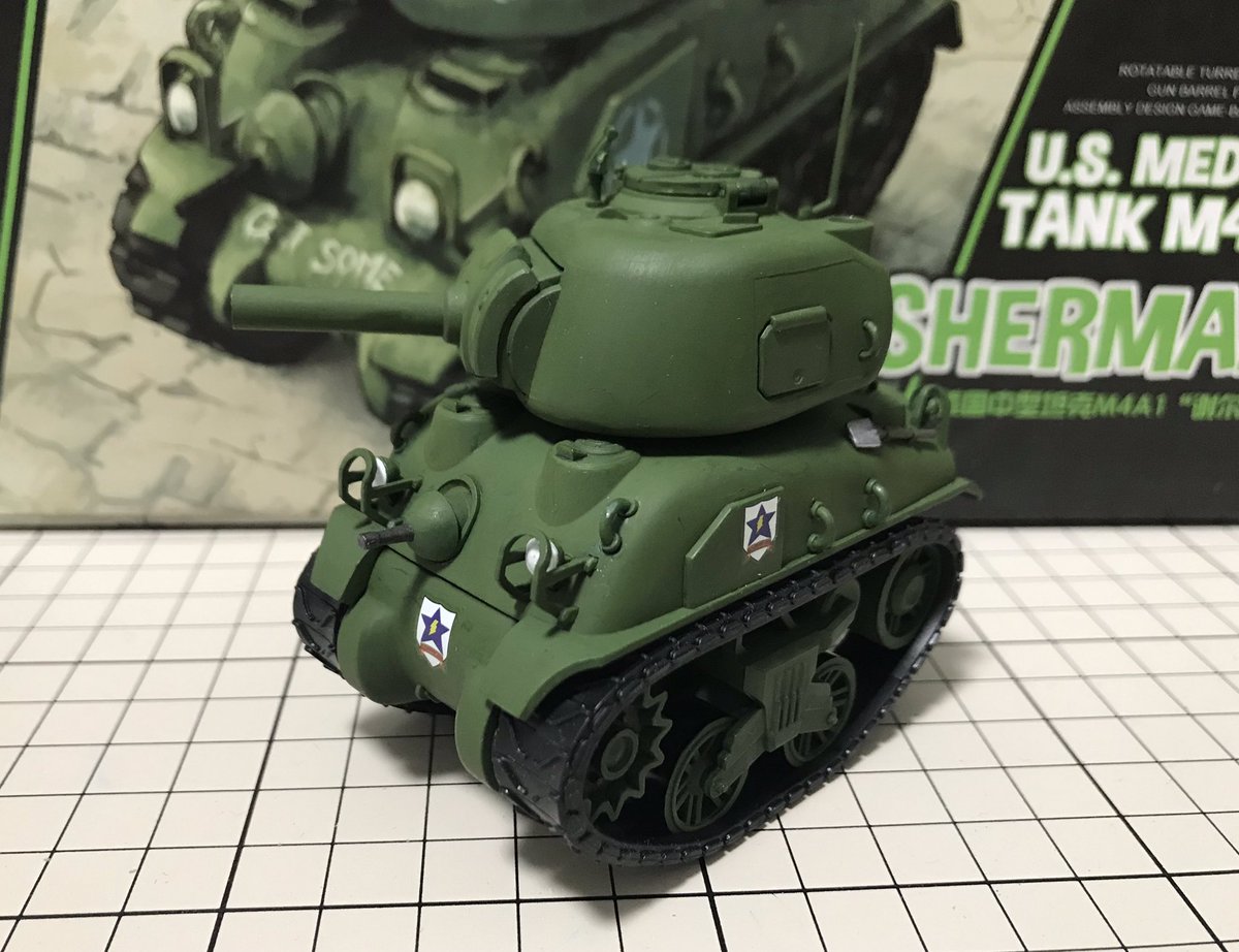 22 61 #今月作ったプラモ晒そうぜ モンモデルのデフォルメシャーマンをサンダース仕様で。ストレートに組んで塗ってデカール貼るだけ!お手軽! 19/08/31 22:13