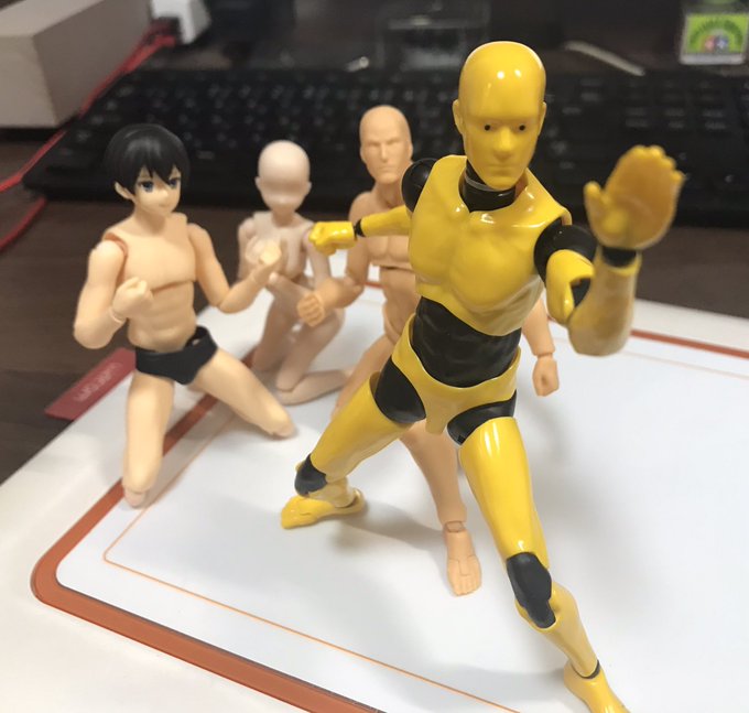「やめるんだ!罪もないフィギュアをエロ玩具扱いする非道もそこまでだ!」 「テ、テストマンさん!」 「あぁ!でも彼、私たちとサイズ感バッチリだわ!」 「黄色の黒の色分けも人体構造の基礎となる円筒形状のパース付がわかりやすくてデッサン人形にぴったりだぜ!」