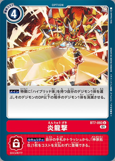 本日発売の「デジモンカードゲーム ブースター ネクストアドベンチャー」にて「炎龍撃」「スターライトベロシティ」「デッド・オア・アライブ」「エボリューションエンシェント」描かせていただきました。よろしくです。digimoncard.com #デジカ #デジモンカードゲーム