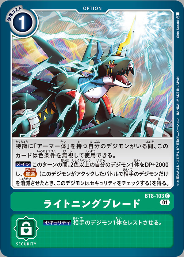 本日11/26発売の「デジモンカードゲーム ブースター ニューヒーロー」にて「プラズマシュート」「ライトニングブレード」「暗黒のガイアフォース」描かせていただきました。ミサイルじゃない方のプラズマです。よろしくお願いします。 digimoncard.com #デジカ #デジモンカードゲーム