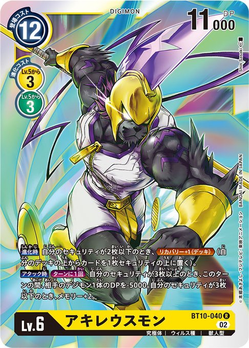 5/27に発売されたデジモンカードゲームブースター クロスエンカウンターにて「アキレウスモン」描かせていただきました。バイタルブレスで登場したムキムキかわいい獣人型になります。皆様よろしくお願いします。 digimoncard.com #デジカ #デジモンカードゲーム