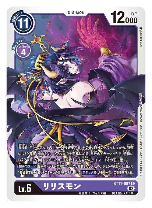 9/30発売のデジモンカードゲーム ブースター ディメンショナルフェイズにて「リリスモン」描かせていただきました。クロスウォーズ版ってやつですね。よろしくお願いします。 digimoncard.com #デジカ #デジモンカードゲーム