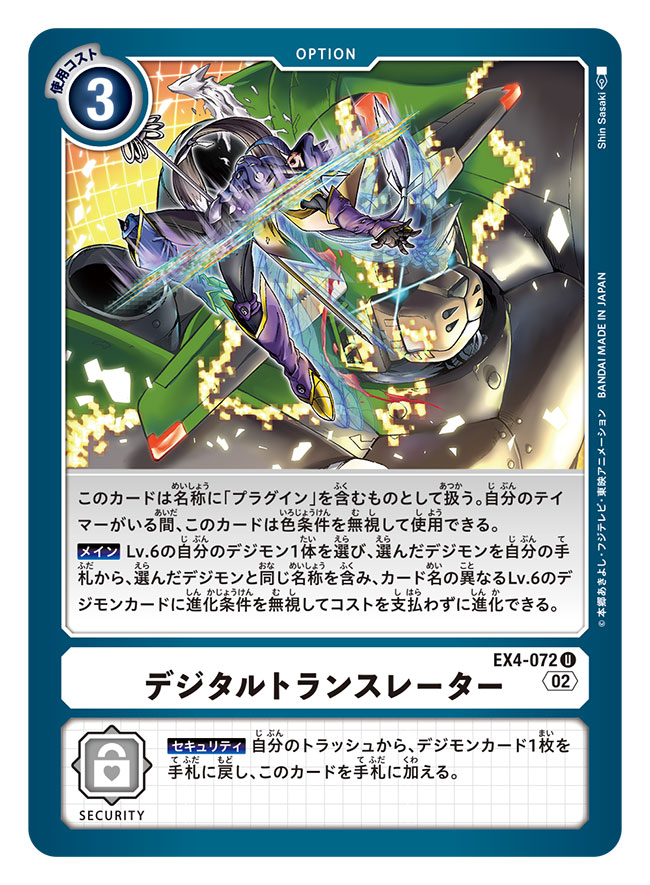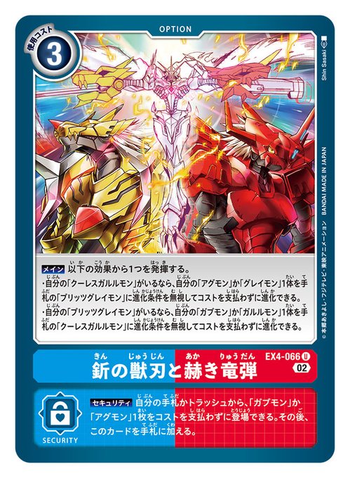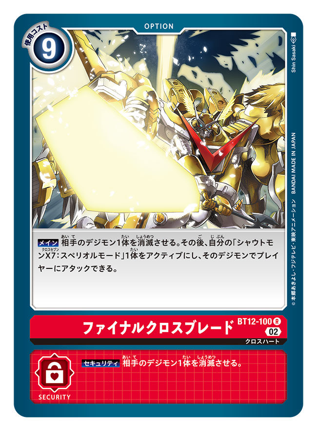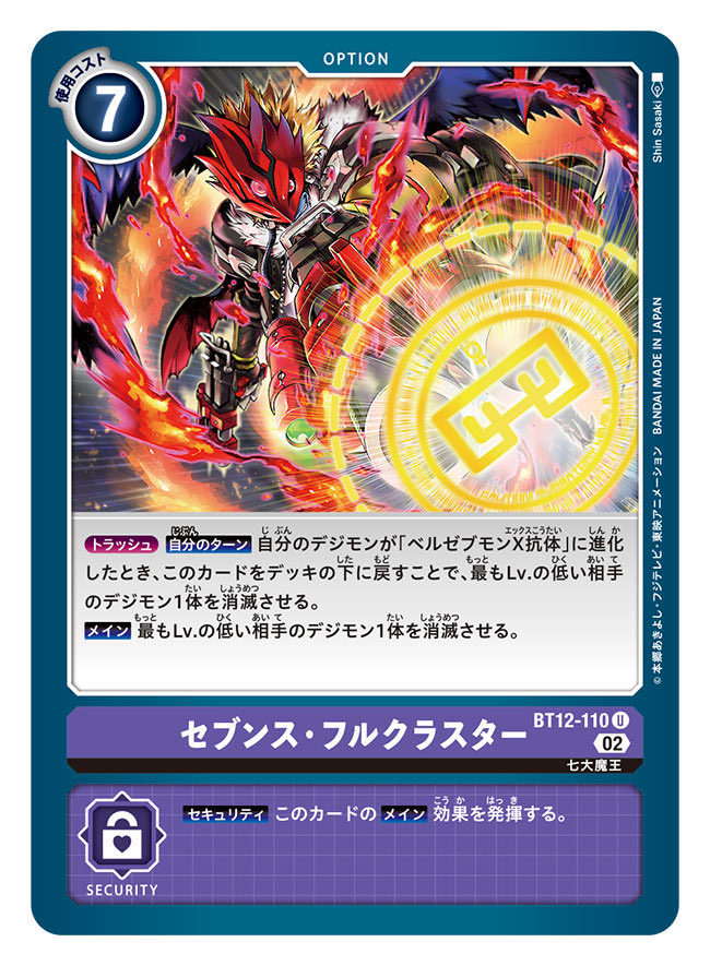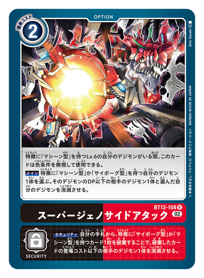 デジモンカードゲーム ブースター アクロス・タイムにて「ファイナルクロスブレード」「スーパージェノサイドアタック」「滾る力」「セブンス・フルクラスター」描かせていただきました。佐々木心名義です。よろしくお願いします~! digimoncard.com #デジカ #デジモンカードゲーム