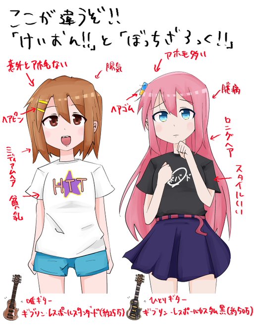 今日の一枚( *´艸`)✨✨ これで唯ちゃんとぼっちちゃんの違いはばっちりだね👆✨✨ #けいおん #ぼっちざろっく #333illust