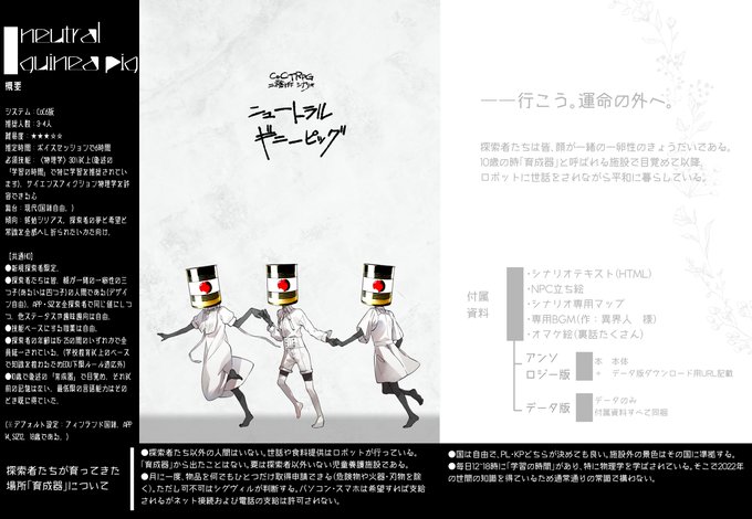 サークル「百面荘」受かってました!!!🙌 というわけでしてCoC6th二次創作シナリオ「ニュートラルギニーピッグ」制作中です!! 1d100正気度喪失アンソロジー企画シナリオ本『一賽百鬼夜行』に掲載予定。 剪定された白い命たちのお話です。よろしくお願いします!! #百面荘 #C100 twitter.com/1d100only/stat…