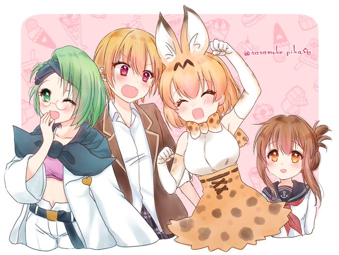 #推しを答えて4人指名リレー ふぇいくりさんに頂きました~ワーイ! 良い画像が無かったので歴代の推しちゃん描いた💡 ディアーナちゃん(悠久) 樹里ちゃん(シャニマス) サーバルちゃん(けもフレ) 電ちゃん(艦これ)