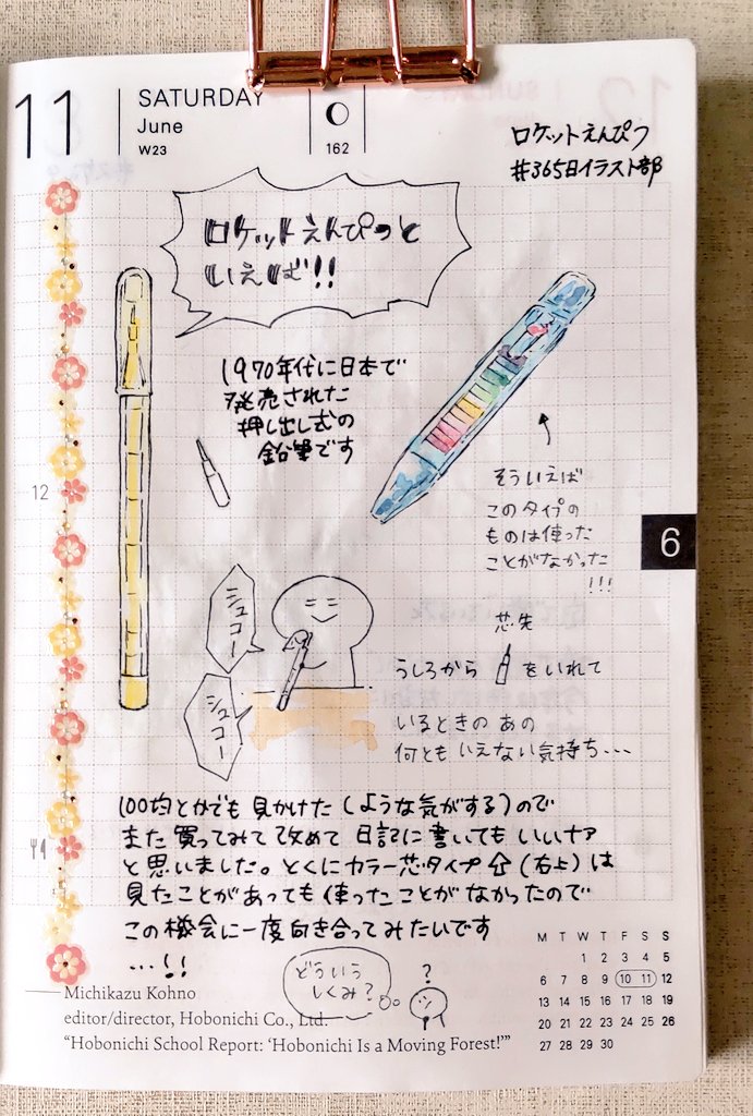 #ほぼ日手帳 #ほぼ日 #365日イラスト部 6/9 チョコミントなもの 6/11 ロケットえんぴつ