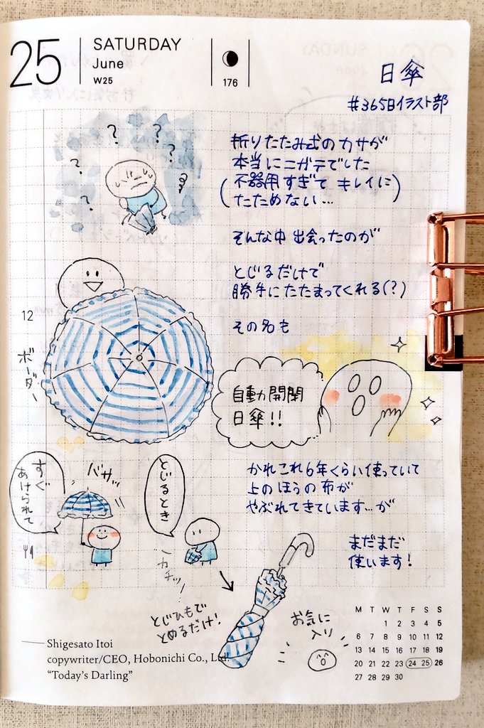 #ほぼ日手帳 #ほぼ日 #365日イラスト部 6/25 日傘