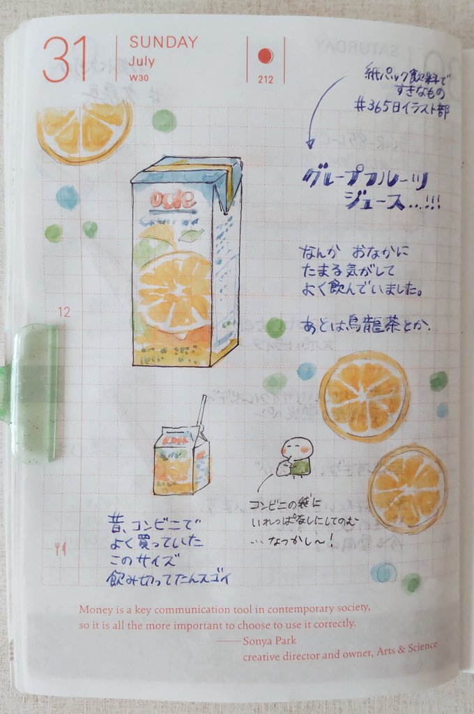 #ほぼ日手帳 #ほぼ日 #365日イラスト部 紙パック飲料ですきなもの/朝顔スケッチ/リヴリー/おみやげ