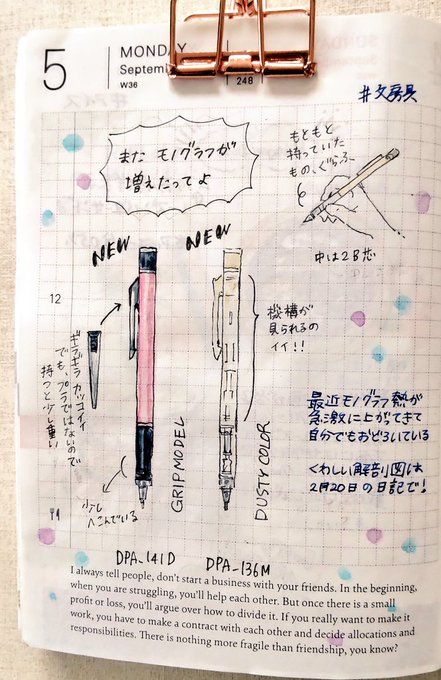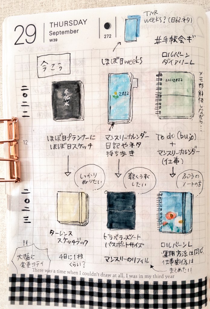 4 34 #ほぼ日手帳 #ほぼ日 #365日イラスト部 文房具/げんしん/手帳会議/カバンの中のもの3つ 22/09/10 10:02