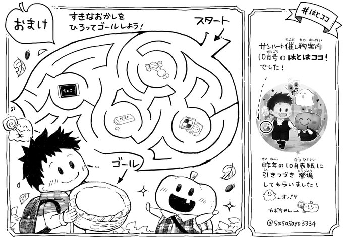 2 11 10月号の鳩はここでした🕊 おまけも良かったら遊んでみてください🎶 おかしを全部拾うルートや、ひとつも拾わないルートもあります👀 #イラスト #はとココ #めいろ twitter.com/sunheartkun/… 22/11/15 10:32