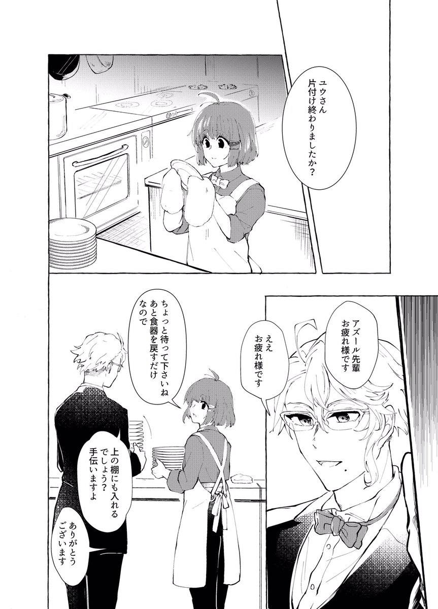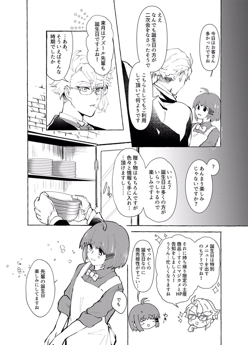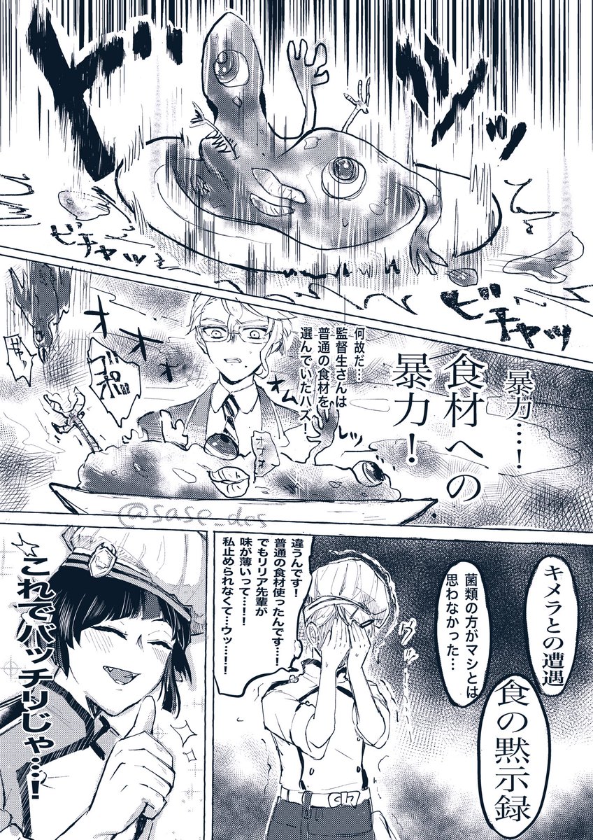 監+オク 料理的なあれそれ (ひとつまみ程度のアズ監を入れた…) ※監顔あります トーンのモアレごめんね… #twstプラス
