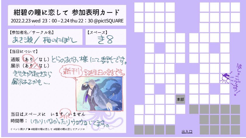 7 22 2/23アズ監♀webオンリー「紺碧の瞳に恋して2」に参加させて頂いております! 展示のみですがのんびりどうぞ〜! #紺恋2サークル 23/02/22 22:04