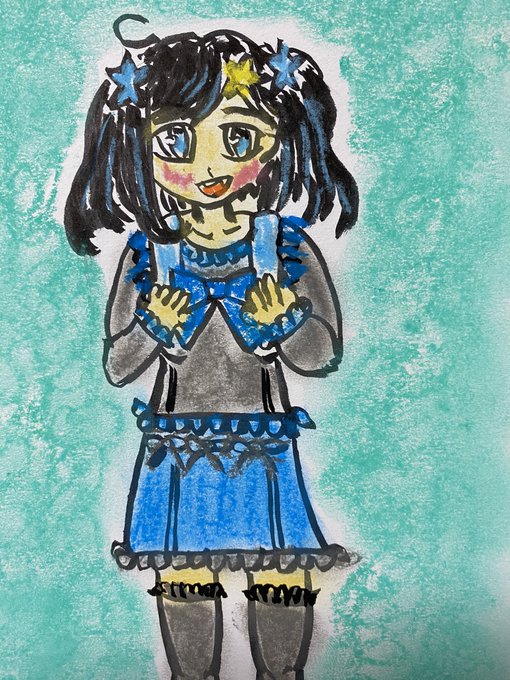 ゆめみうつつ 甘魔あめり(2022) 自分で描けるなら推しをコラボさせてみようとね! これ、名古屋市障害者作品展示会に出そうかなぁって! すてきな16歳だね! #アールブリュット #ゆめみっき #あめりえにっき