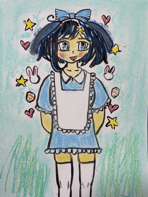 2 9 イースターおめでとう🐰🥚な、ゆめみちゃん!描いてる途中でも尊さに目がうるんだよ!🥺 足元さみしかったから草生やした。 見にくいけどロップイヤーなんだよ! #ゆめみうつつ #ゆめみっき #Vtuber #イースター #アールブリュット 22/04/18 10:05