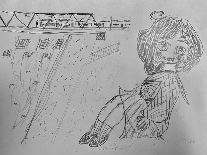 ゆめみと一緒に河川敷でのんびりしたいよなぁ!なぁ!って感じ やたら鉄道こまけえよな、シングルアーム・パンタグラフとか これが青春てもんなのねぇ! #ゆめみうつつ #ゆめみっき
