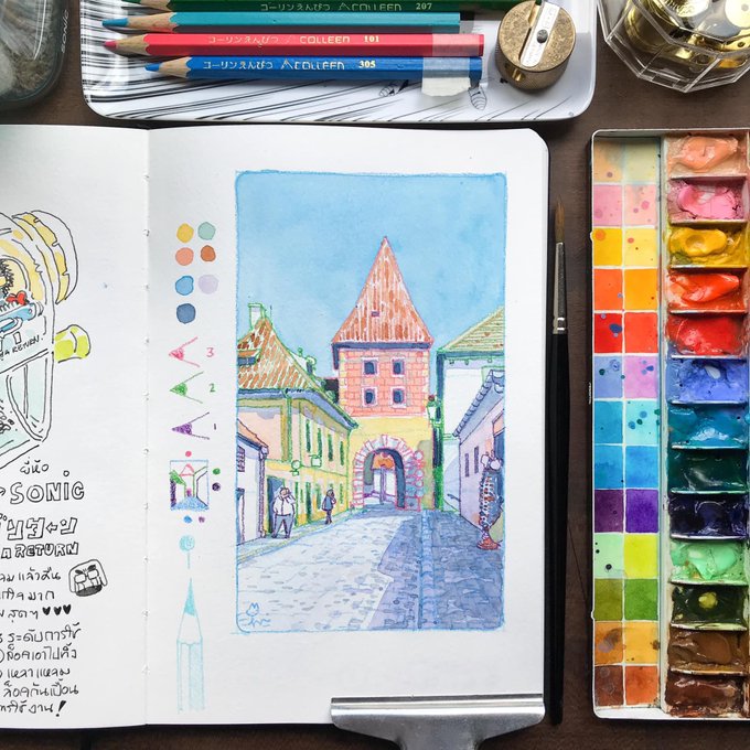 วันนี้มีแดด! เอาตึกสีสดใสมาฝาก "ลองตัดเส้นด้วยสีไม้ หลายสี แบ่งตามระยะใกล้ ไกล สดใส แปลกใหม่ดีเหมือนกัน" It's sunny today! Bring a brightly colored building "The lines use with many colors of pencil. Divide by closely, far, bright, exotic as well. #วาดเล่นบ่ายวันอาทิตย์2021