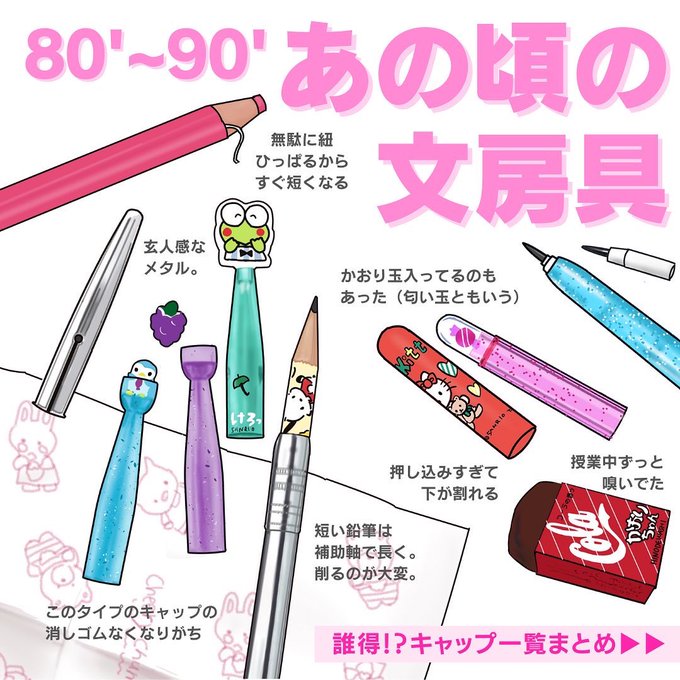 昔の鉛筆キャップをまとめました。 #懐かしいと思ったらRT #平成レトロ #文房具 #文具