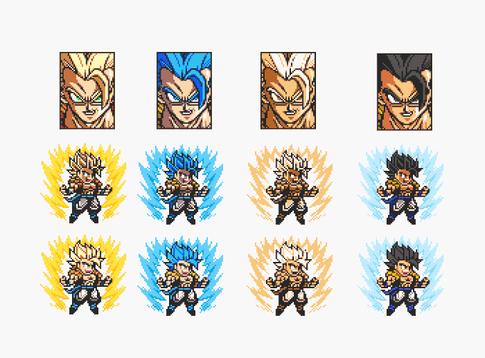 Part 2! Gogeta Blue in DBZ Legendary Super Warriors style (Zaza's bandwagon) #pixelart #ドット絵 #DragonBallSuper twitter.com/sasuderuto/sta…