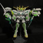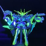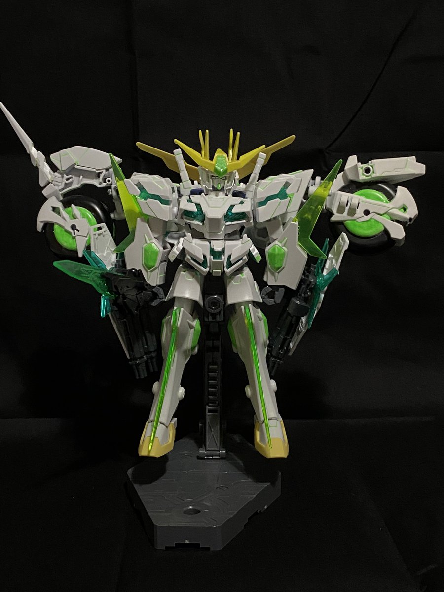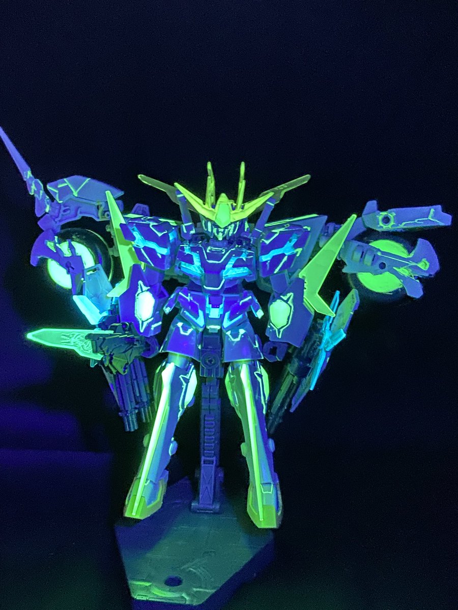 初改造作のバイクと合体するSDユニコーン 余剰パーツなしで合体できて、蛍光塗料を使ってるのでブラックライトで光る #個人的に今年1番頑張ったプラモデル見せてください #今年作ったプラモ晒そうぜ #ガンプラ