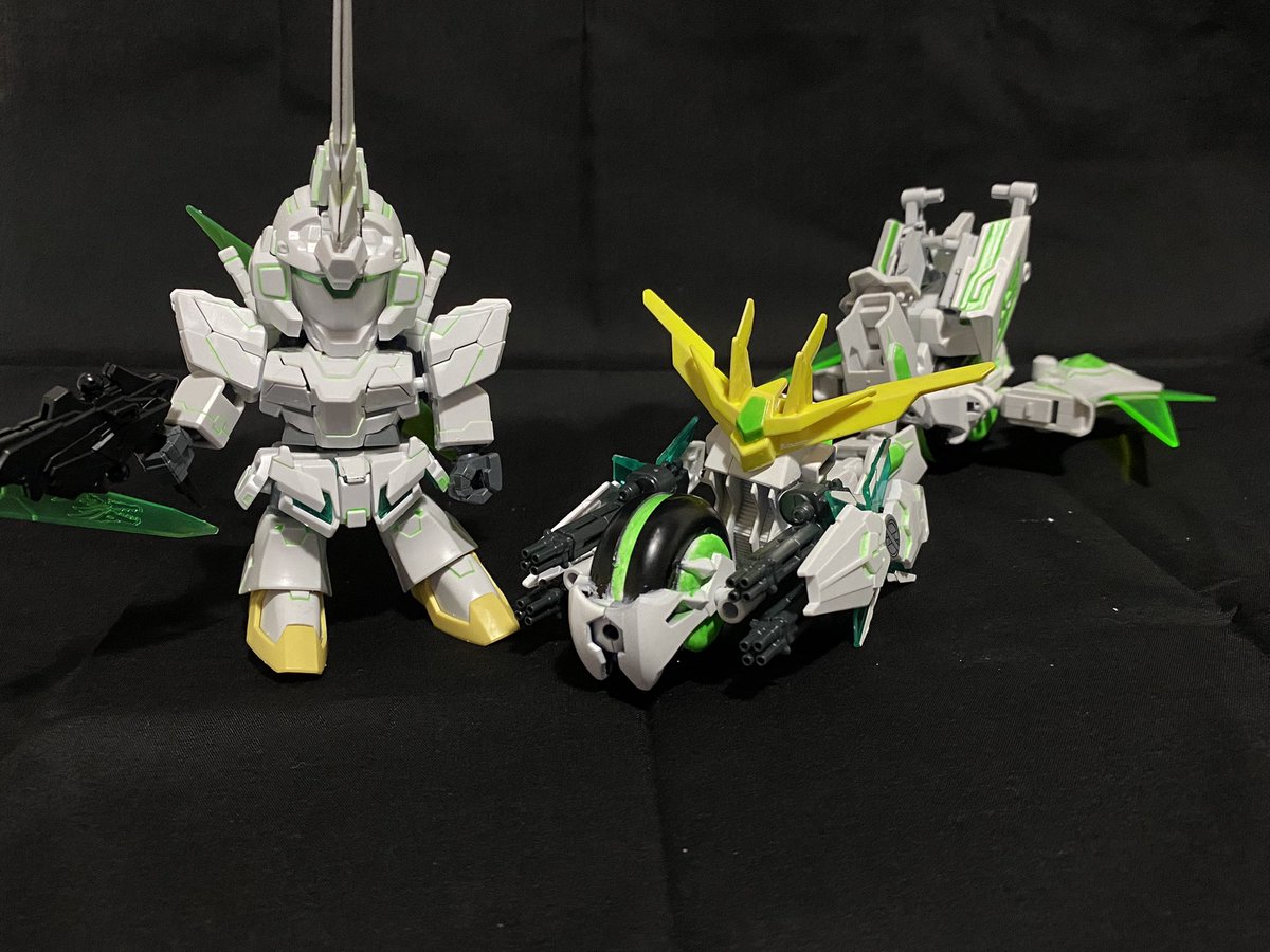 1 3 初改造作のバイクと合体するSDユニコーン 余剰パーツなしで合体できて、蛍光塗料を使ってるのでブラックライトで光る #個人的に今年1番頑張ったプラモデル見せてください #今年作ったプラモ晒そうぜ #ガンプラ 22/12/25 23:21