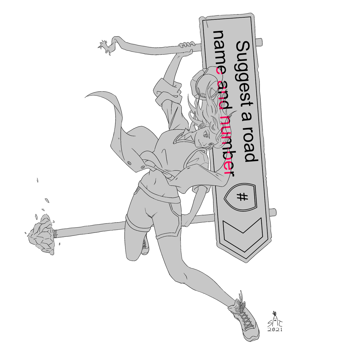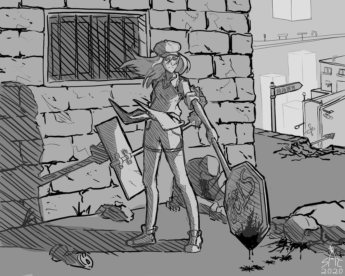 Experimenting a bit with visual style for Sign Girl, which I'm thinking of settling with the name Bella. #rkgk #sketch #characterdesign #conceptart
