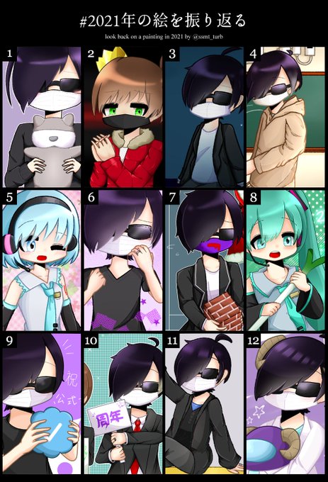 5 12 💜2021年の絵を振り返る 今年もたくさん不審者描いたなあ 来年も描きます😊 21/12/23 21:29