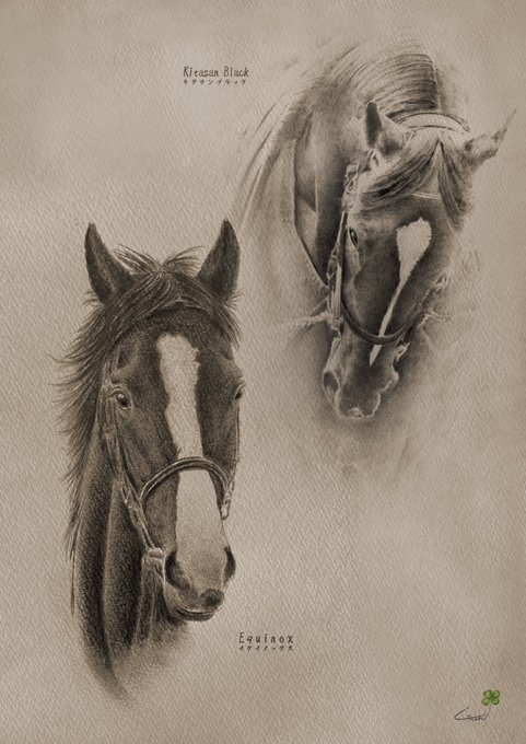 ここまで登ってこい…!というテーマで去年描いたイクイノックスとキタサンブラックの絵 イクイノックスの成長が眩しい どこまでいくんだろう