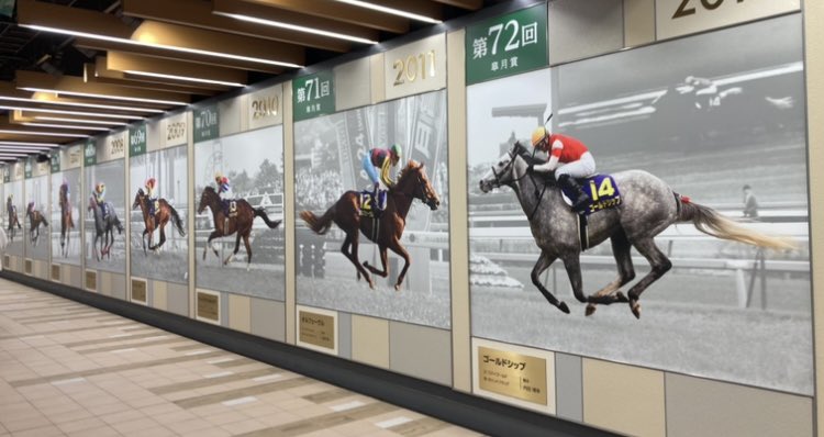 皐月賞と言えば、駅から中山競馬場への通路にある歴代皐月賞馬の展示 類い稀なる能力を持った2頭が向かい合う歴史的な場所 オルフェーヴル、ゴールドシップ 父の名はーーー。 #ステイゴールド