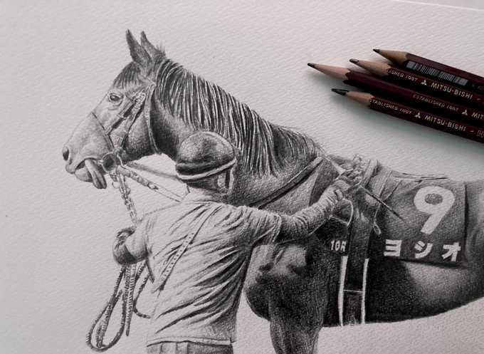 9 34 「うしろ姿」 初めて帯広競馬場に行った際に印象に残った光景を描いた一枚です。 圧倒的だった人馬とソリの後ろ姿 つぶらな瞳に惚れ惚れ #ばんえいお絵かき 23/01/21 19:12