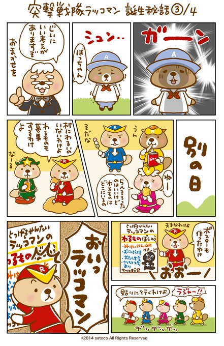 #突撃戦隊ラッコマン は #突撃ラッコさん の戦隊ヒーロー編で登場するキャラですが、知らない方のために2018年頃描いた4コマ漫画を載せていきますね☺️ (1〜15話までツリー表示してみます) ※まんがへのコメントには「いいね❤️」でお返事とさせて頂きます🙏 #ラッコマン #突撃戦隊ラッコマンまんが