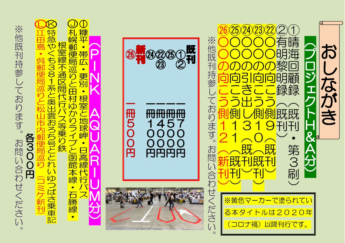 8/13(土)C100の1日目東5・プ43a「プロジェクトH&A」新刊「○○の向こう側11」B5版本文40P頒布価格500円、2年ぶり開催冬コミC99A参加レポート他になります。 既刊C97刊行分以降他旅行記等委託あり。 今までの既刊見本誌も持参しますので閲覧はお申し付けを。 satohmomo777.wixsite.com/projecthanda #C100