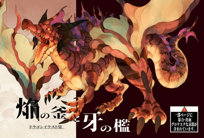 30 85 ■新刊のお知らせ■ 10月1日(土)開催のけもケット12にて新作ドラゴンイラスト集「焔の釜と牙の檻」を頒布します!A5横長20ページにドラゴンばかり詰め込んだつよそうな本がでます!対象年齢の制限はありませんが一部ページに刺激的な表現が含まれますので苦手な方はご注意下さいませ! 22/09/19 14:54