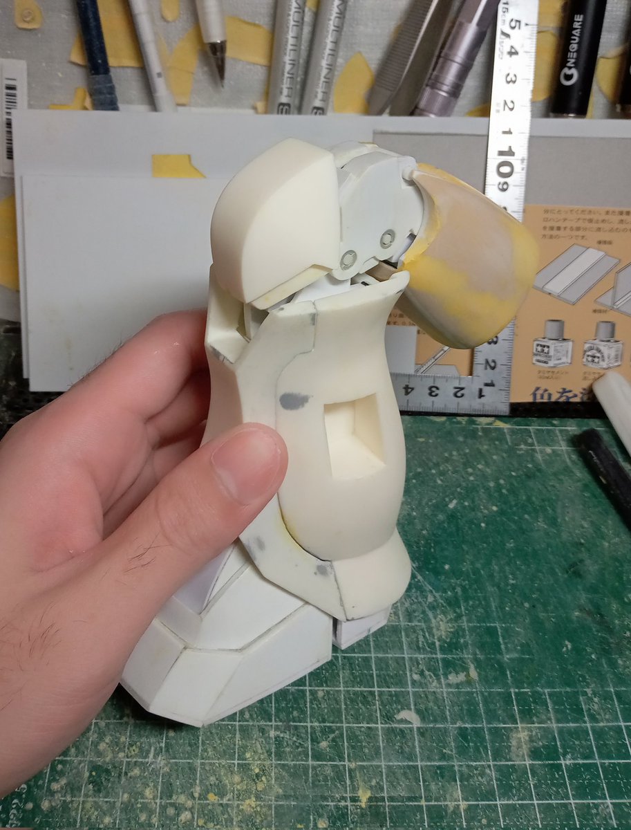 19 180 #ガンプラ ども❗おはざいます💡 今回は気になってた肩関節を思い切って作り直しする事にしたのでその進捗です💡 まだベース部だけなので見た目がアレですが、肩アーマーの取付け基部とディティールを追加すれば密度上がってもっと良くなるんはず😙 それにしても旧タイプのザックリ感よ… 23/01/21 08:49