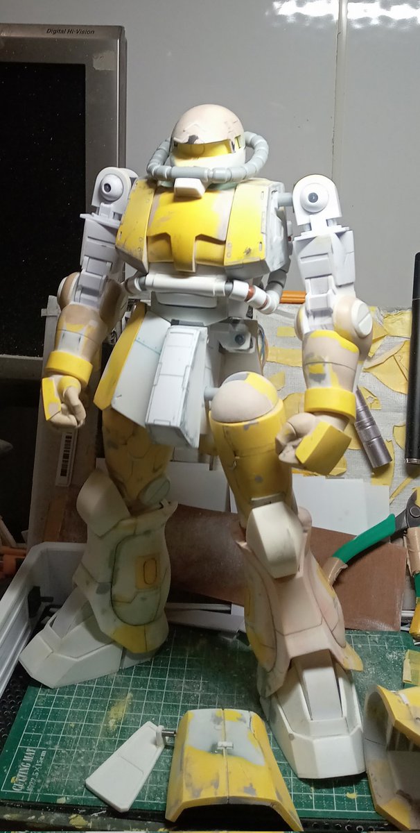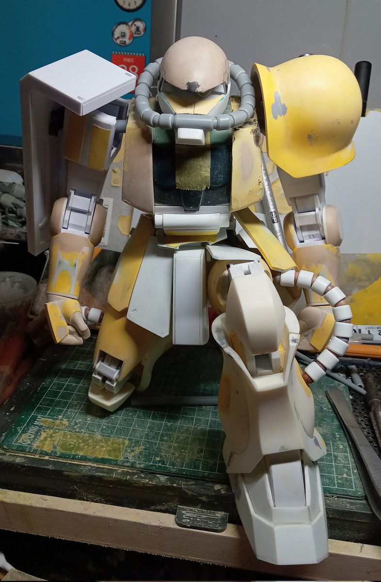 6 68 #ガンプラ #旧キットゴッグ お久しぶりです進捗状況と生存報告です💡 出来たら小出しに報告したかったけど、加工の際に全身バラバラになって写真とれる様な感じじゃなかったので元に戻すのに時間かかっちゃった💡💦 今後は下乳のボリュームupと肩を自作してHGに寄せる予定です✨ 22/01/05 00:14