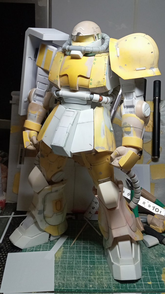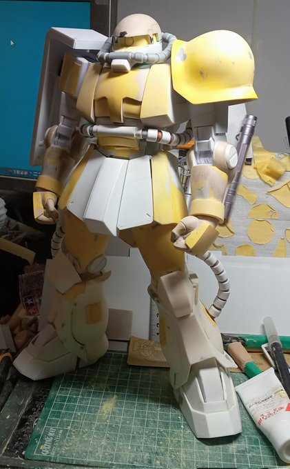 #ガンプラ ども❗1/60ザクの進捗と生存報告です💡 取り敢えずここまで作ったのでブッピガン💡 何にも考えないで作ったから各部のバランスがちょっとおかしい様な🤔
