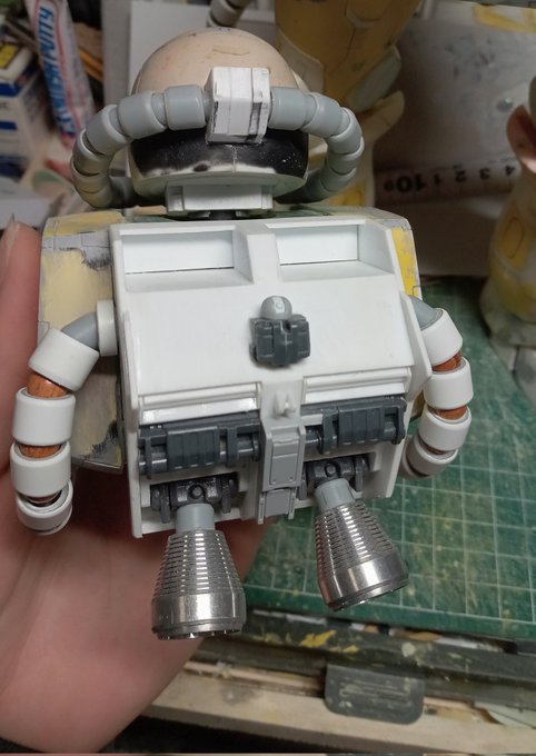 4 33 #ガンプラ #三種のヒンジ盛りザッ君 ども❗おはざいます💡 ザッ君に何かしら凸モールドを入れたかったので4号戦車のヒンジをマルパ…参考に3種のヒンジを作ってペタりしました✨ 1番小さい物は太もも横に付けたんですがほぼ見えないですね…頑張ったのに💀💦 23/01/27 05:23