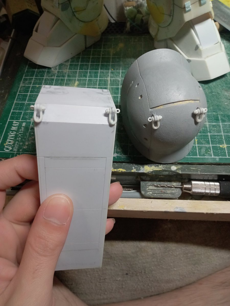 14 80 #ガンプラ ども❗進捗です 最近サボってたので肩アーマーに鋳造表現とフック?を取り付けて、膝アーマーはスジ彫り+溶接表現してました💡 それと前回のスモークは取り敢えずバックパックに設置して小窓にはティーガー初期型のエアクリーナー?的な物を付けようか検討中なんですが似合うかな🤔 23/02/10 02:24
